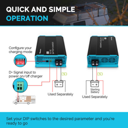 The Renogy DC-DC Battery Charger is designed for dual battery systems to ensure the auxiliary battery system is operating at peak efficiency for longer when you are off the grid. The DC-DC charger will safely charge the auxiliary battery bank from the started battery when the engine is running. A great addition to your RV, Boat, or any other off-grid vehicles.